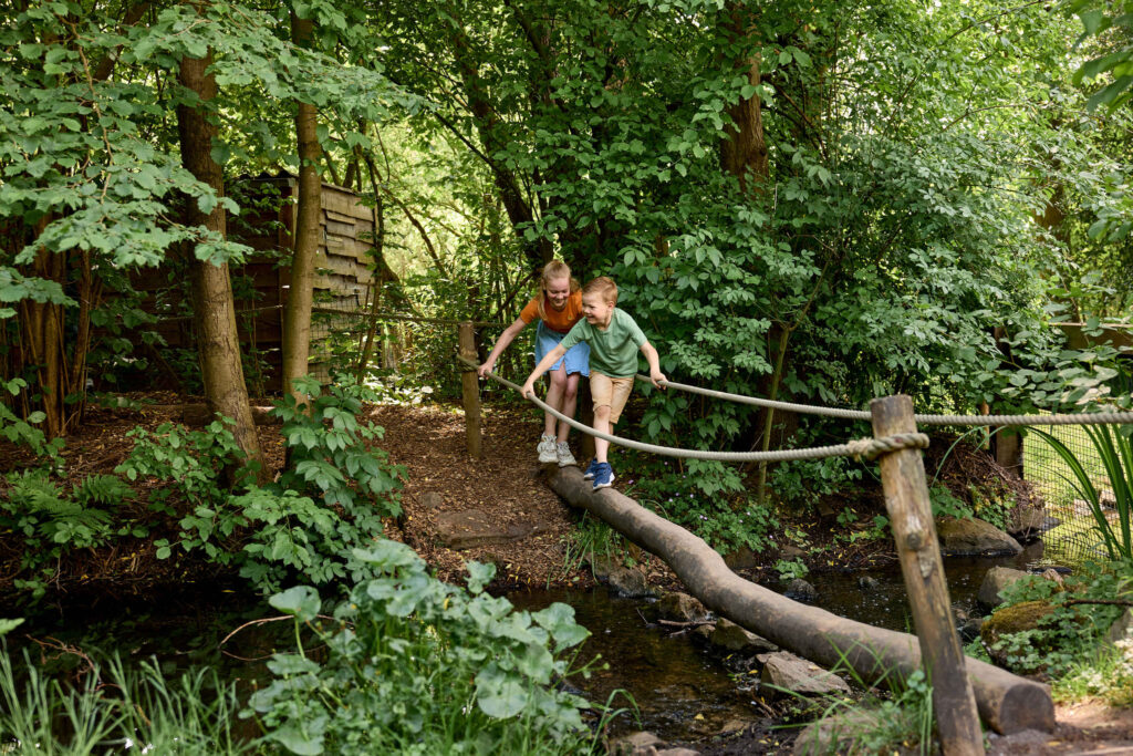 Kinderen kunnen bijvoorbeeld over houten palen balanceren of via een vlot een moeras oversteken.
