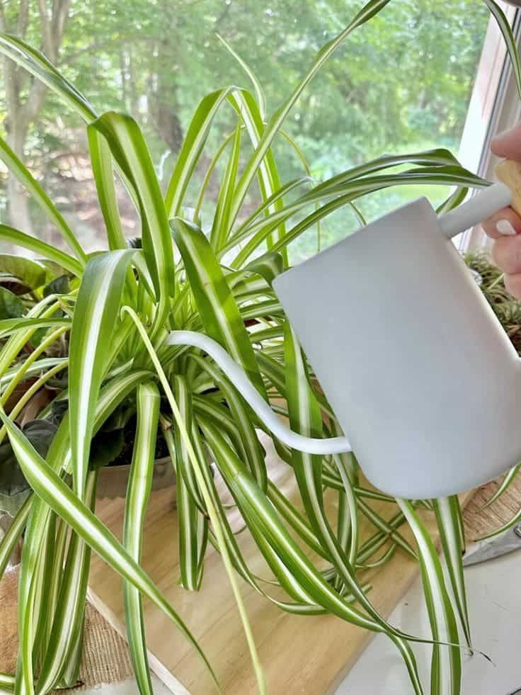 Om groot te worden hebben spinragplanten de juiste voedingsstoffen nodig. Ik geef de mijne tijdens het groeiseizoen elke twee weken een uitgebalanceerde vloeibare kamerplantenmeststof, verdund tot de helft.